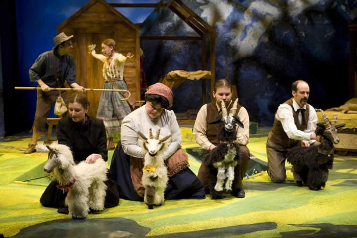 Tinette (Ann Marie Pinto) Sebastien (Doug Wilder), Clara & Heidi Frau Rottenmeir (Sandra L. Murphy) discovers the kitten!