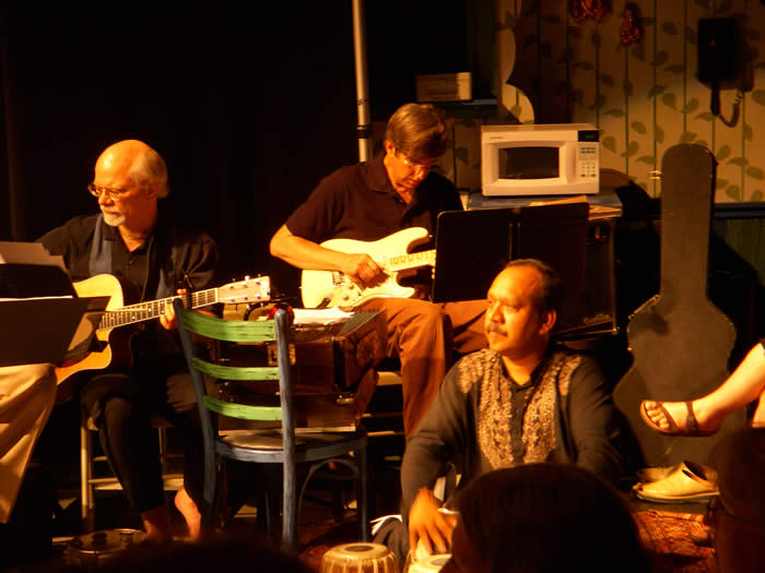 Rufus Juskus on guitar and harmonium, Gordon Coupe on guitar & percussion, Debue Nayak on tablas & percussion