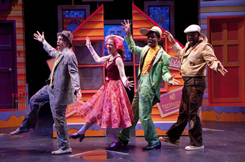 George & Martha, Tons of Fun based on the collection of stories by James Marshall (Miss Nelson Is Missing). Commissioned and produced by Imagination Stage. Directed by Katherine Chase Bryer. April 6 to May 28, 2011. George & Martha, two hippopotami, do everything together, with the same ups and downs in true friendship as humans. They teach each other that privacy is important, practical jokes can sometimes backfire, and pouring split pea into your loafers to spare the chef's feelings is not the best laid plan. Gentle stories framed by a vaudeville cabaret. Cast of 5. Review George and Martha: Tons of Fun at Imagination Stage | Maryland Theatre Guide See Photos. Also, see YouTube Video.